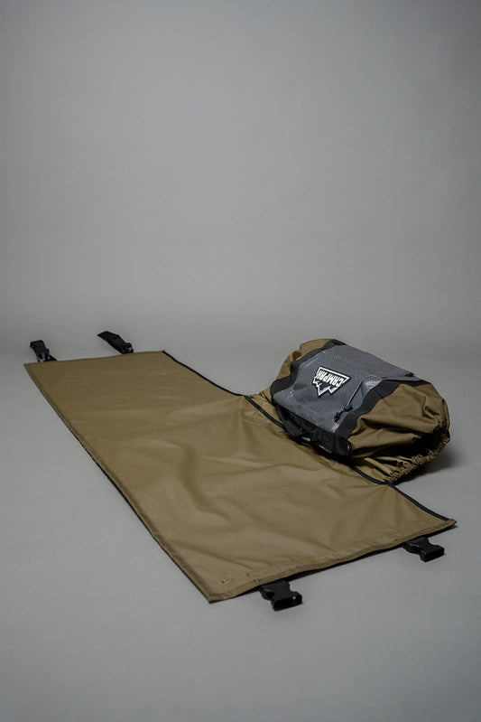 Our Compresssion Bags are the ONLY bags that start out laying flat. Instead of having to cram your gear into stuff sacks, duffle bags, or garbage bags, you simply have to fold up your soft gear, buckle it in and cinch it down!